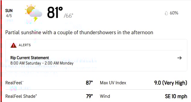Swipe image left for more daily forecasts