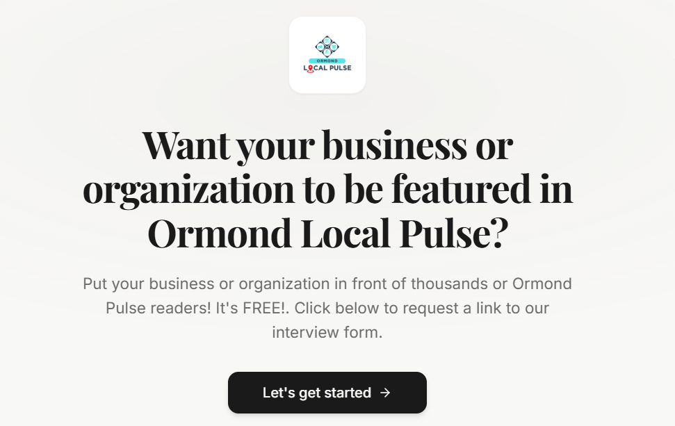 Our community is brimming with businesses that have fascinating stories and big hearts. If you're a local business owner making waves, crafting unique experiences, or simply putting a smile on our faces, we want to chat with you! "Ormond Local Pulse" is eager to shine a light on the unsung heroes of our town. Let's collaborate and let the community know what makes your business special. Send us a message, and let's celebrate the spirit of Ormond Beach together!