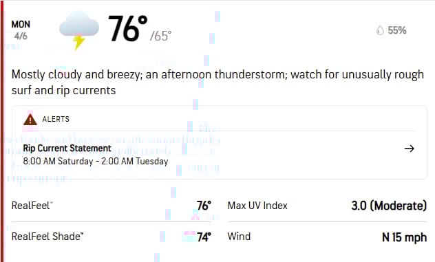 🌧️🌧️What's coming Monday and beyond. A strong cold front is tracking toward Central Florida, with rain chances climbing to 60–70% by Monday afternoon and becoming widespread after 2 p.m. The front is expected to stall across the region through midweek, keeping showers and storms in the picture through Thursday. Coastal totals of 2–4 inches are forecast, with some spots potentially seeing 5–7 inches. Rip current danger at the beaches will be high through Thursday or Friday. If low-lying areas near you flood easily, keep an eye on conditions early in the week. The silver lining: the drought could use the drink.